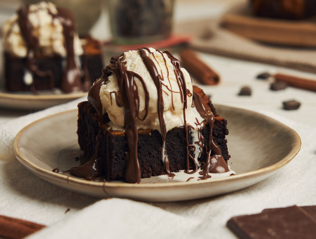 Warmed up on the spot with warm caramel sauce, berries and vanilla ice cream.